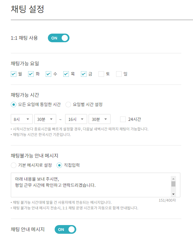 정해진 시간에만 채팅을 하도록 시간을 설정할 수 있다.