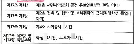 *** 학생 담임선생님은 생기부에 5호 학폭 조치내역 입력 부탁드립니다.