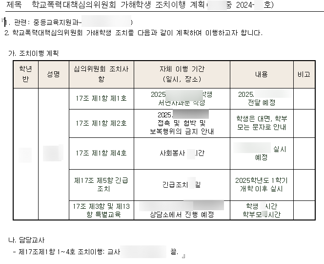 업무 상 필요한 시기: 교육청에서 학폭 심의 결과를 받고, 학생이 조치이행을 완료한 이후