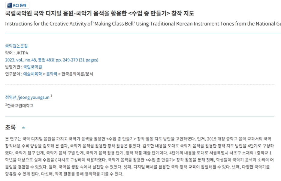 6. 이 논문처럼 국악원의 디지털 음원으로 자신의 삶과 관련된 자료를 만드는 형태도 좋다.