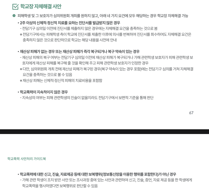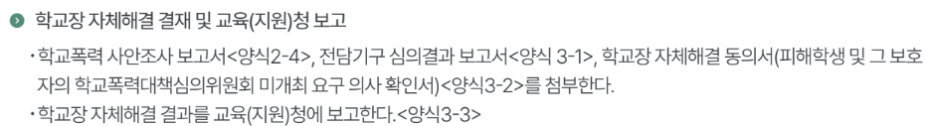 업무 상 필요한 시기: 교육청에 학폭 신고 접수가 되었으나, 피해 학생과 보호자가 학교장 종결을 원할 때
