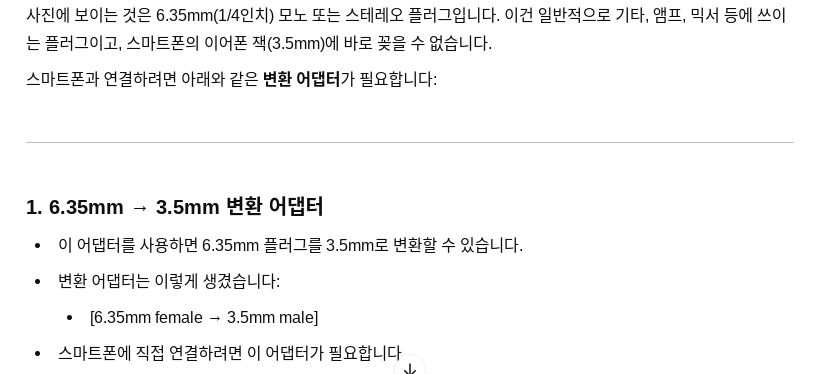 그랬더니 이러한 답이 나왔다. 6.35mm 플러그!