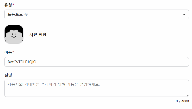 3. '설명' 부분에 프롬프트를 입력한다.