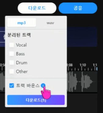 4. 음원 분리를 완료하고 다운로드 아이콘을 클릭한다.
