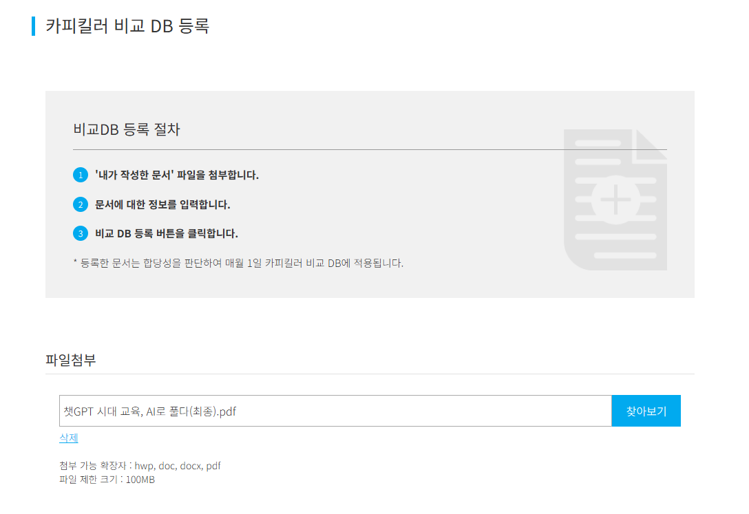 표절검사의 기준! 카피킬러 | 비교 DB 등록기 안내