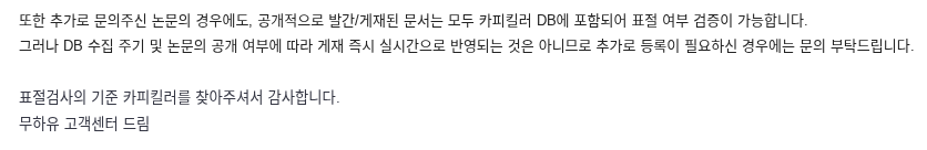 카피킬러 고객센터에 문의하니 아래와 같이 메일이 왔다.