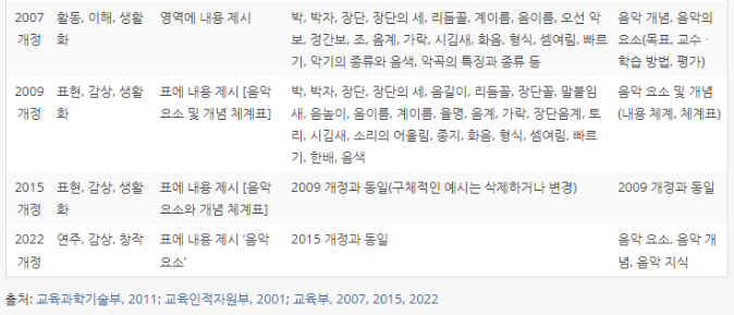 2007 개정 교육과정부터 소위 음악의 7요소가 확정되었고
