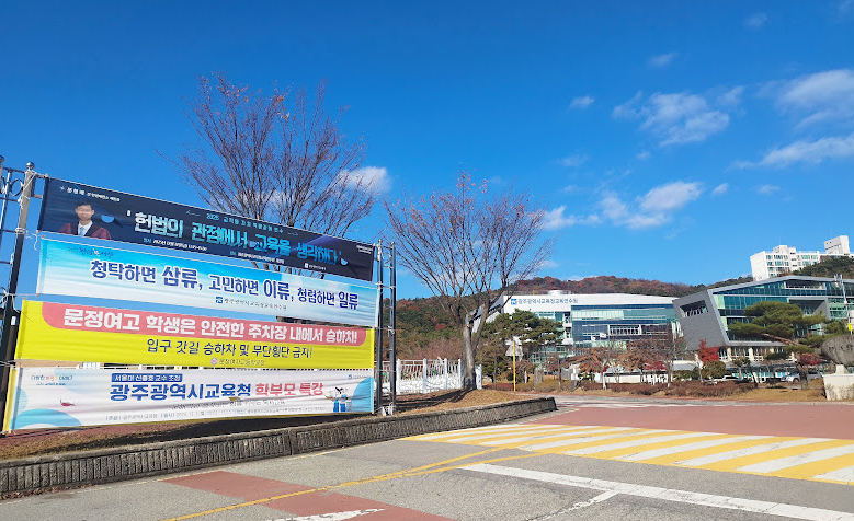 아주 마음에 드는 현수막이 입구에 걸려있던 광주광역시 교육연수원.