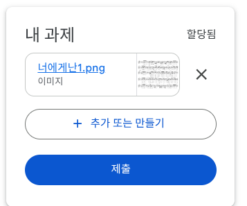 5. '제출'을 클릭한다. 제출하지 않아도 이미지 첨부 상태는 교사에게 보인다.