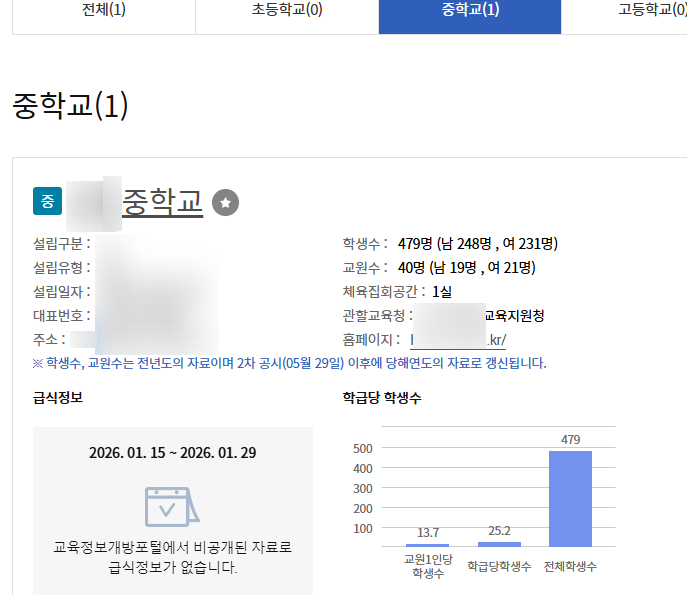 그 학교의 전교생 수, 학급당 학생 수 등을 모두 볼 수 있는 곳