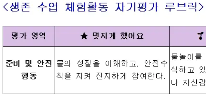 생존수영까지 그냥 체험이 아닌, 의미있는 수업으로 격상시켜버리는 루브릭의 위력!