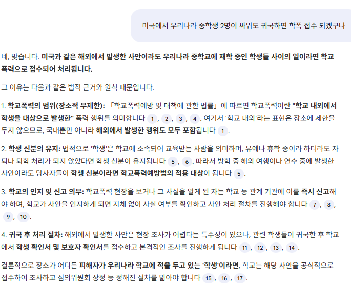 notebookLM에 학폭 매뉴얼을 입력하고 질문했습니다.
